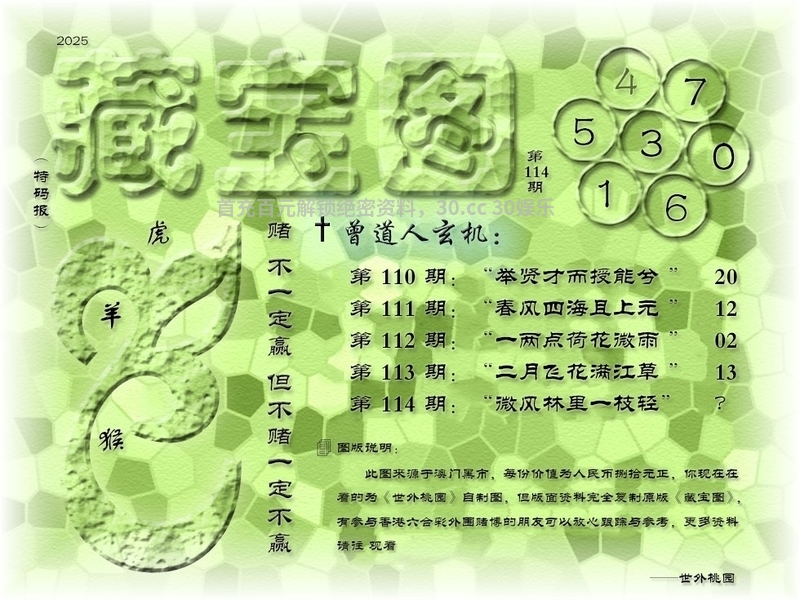 | 114期港彩新版藏宝图 微风林里一枝轻 解:本期微风林里一枝轻解风肖虎兔龙 综合生肖:龙鸡马兔虎猴鼠牛蛇  |